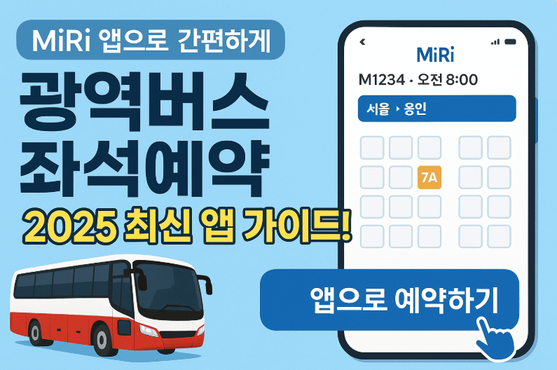 2025년 광역버스 좌석예약, MiRi 앱으로 쉽게 해결하세요. 설치 방법부터 교통카드 등록, 예치금 충전, 빠른예약 팁까지 한눈에 정리했습니다.