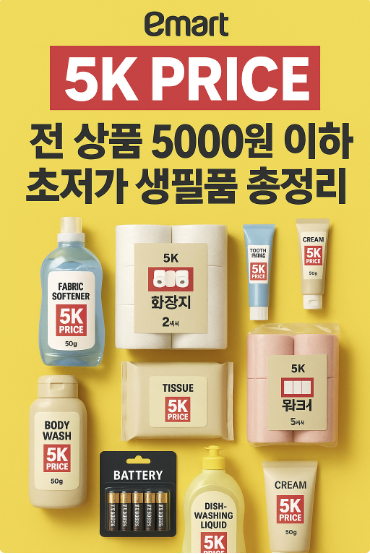 2025년 8월, 이마트가 드디어 초저가 생활용품 브랜드 ‘5K PRICE’를 전격 출시했습니다.
