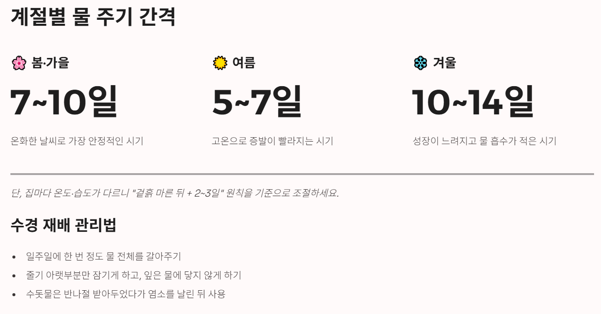 - 여름(고온 건조): 5~7일에 한 번